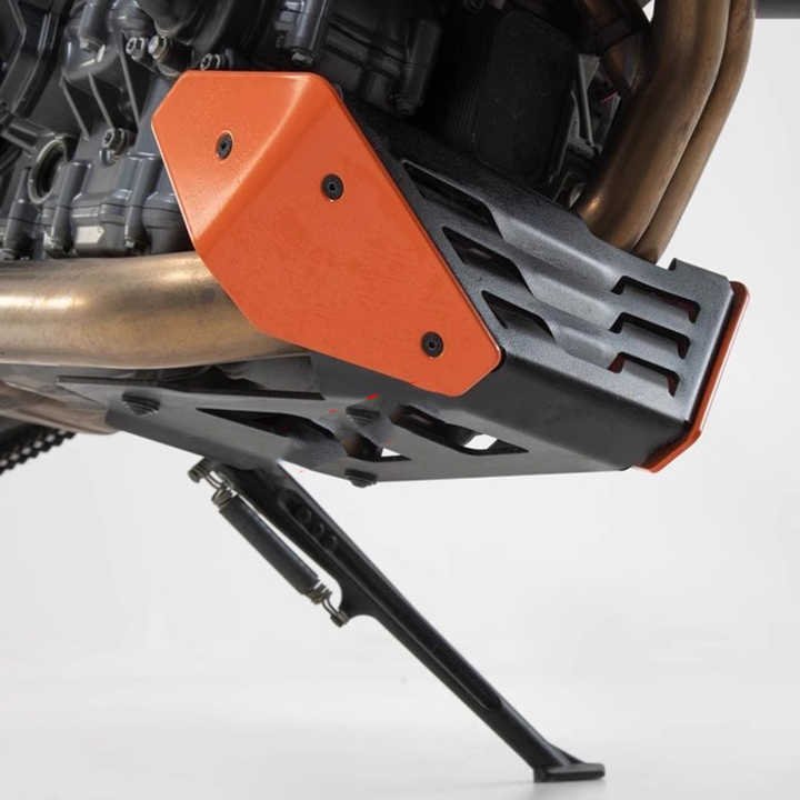 – A motorcycle engine guard, also known as a chassis guard or skid plate, is a protective component designed to shield the engine and other vulnerable undercarriage parts from damage caused by impacts, debris, and falls.